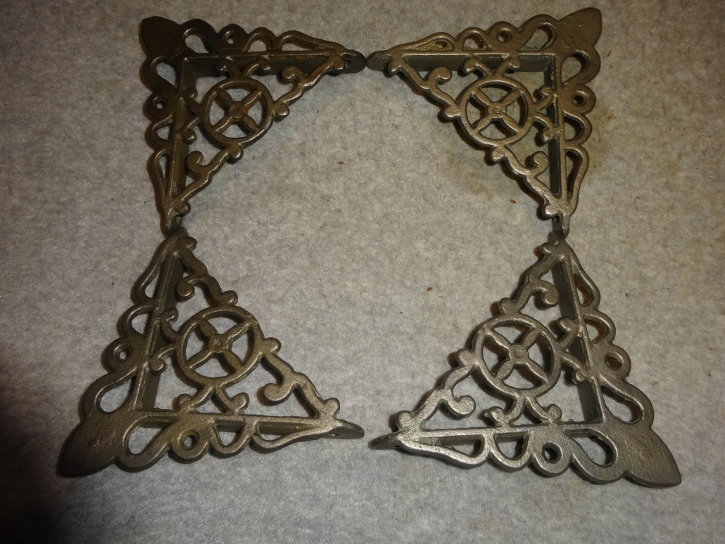 4] Jewelry box corner brackets 4-1/2”x 4-1/2” outside 3” x 3” inside, Are 4 small mounting holes on each