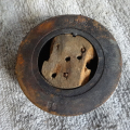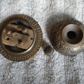 Decorative Victorian style bronze bell buzzer, has a weathered wood base and button that’s sturdy with good contacts that work well.