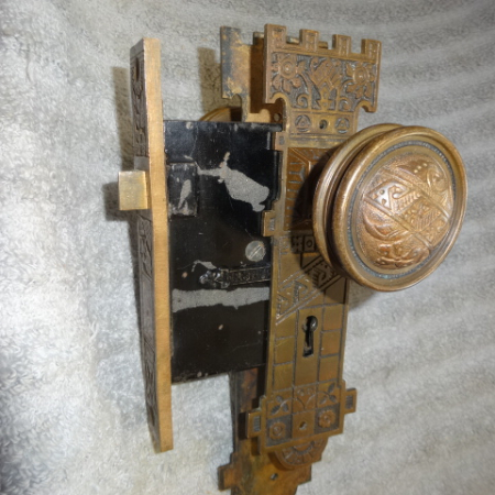 High quality door set in excellent condition with original finish and working key that operates from both sides, set can be installed on either side of