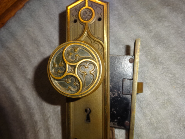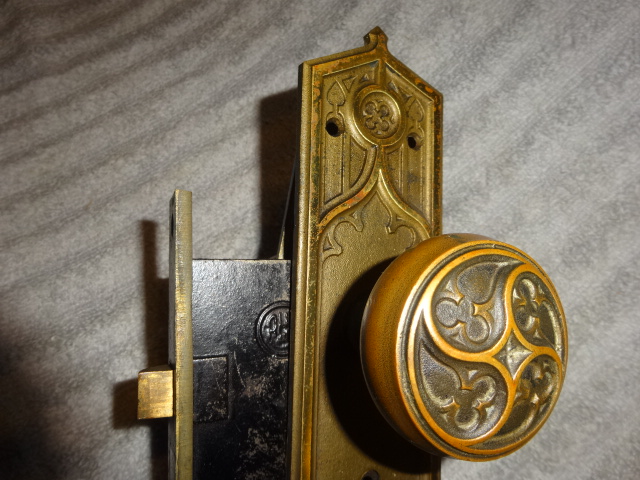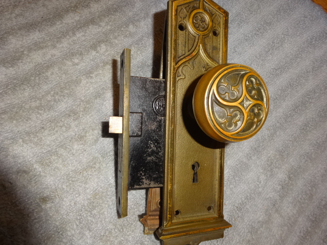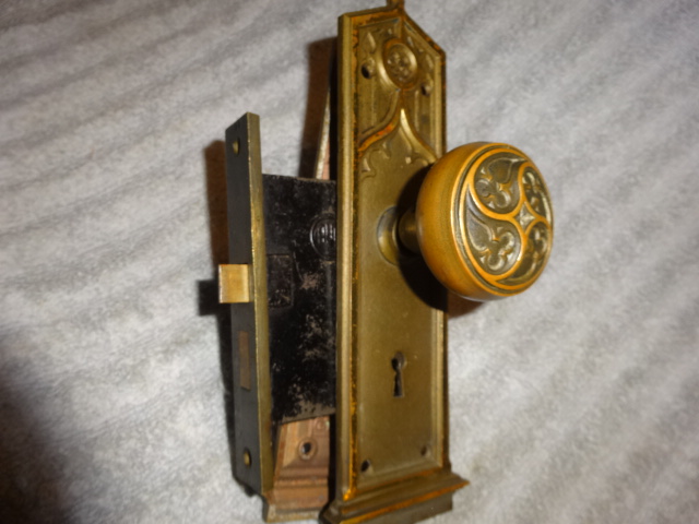 Nice heavy duty gothic lock set that could be used on either a passage or entry door, has a 2-3/8” back set [measurement from middle of knob to lock face] Set up to be used on the right side of a door, will also mount on right side by flipping latch.
