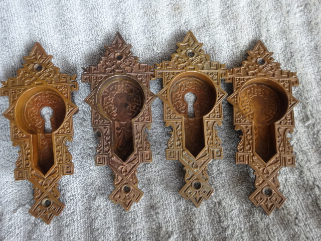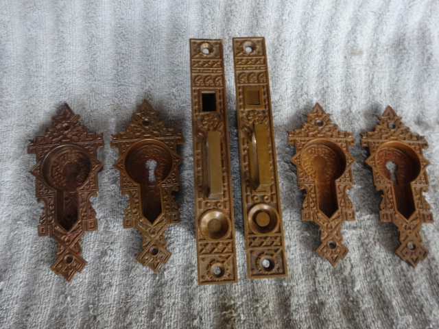 High quality Victorian pocket set for double doors with extra fancy door plates and good working locks, set is in excellent original.