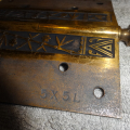 Decorative antique slip-off type hinges in deep relief with original two tone finish in excellent condition