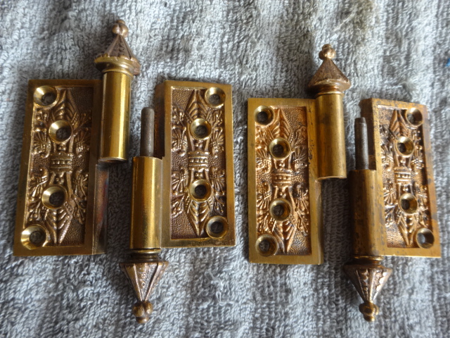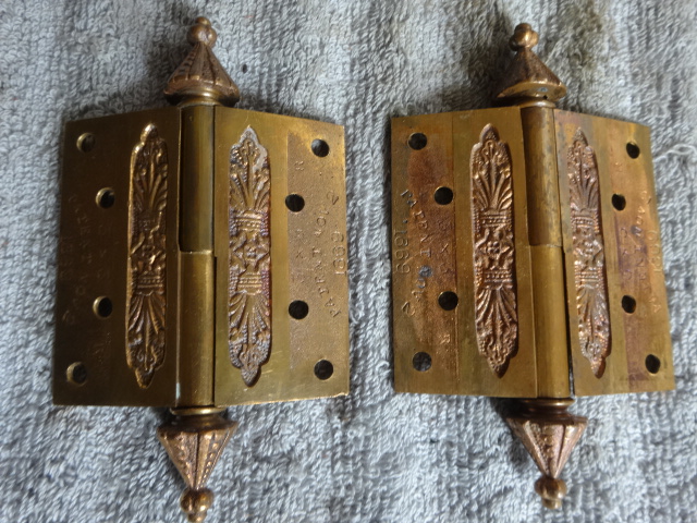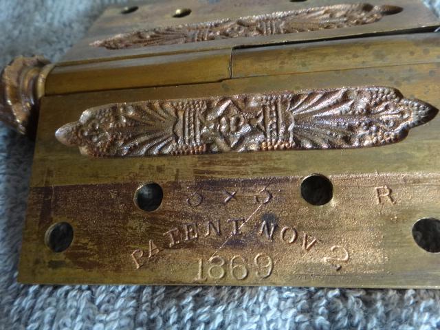 Smaller high quality heavy duty set of bronze door hinges in excellent condition marked 3” x 3” Nov.2nd 1869.
