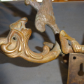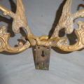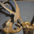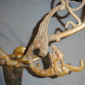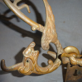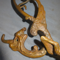Exceptional, extra rare antique figural coat hook with two highly detailed creatures with their stretched tong as hat hooks and large wings as coat hooks made of sturdy cast bronze with nice old original finish. Can be mounted with wood screw or easily change back to supplied machine screw.