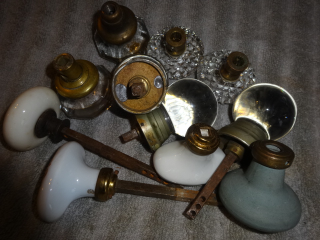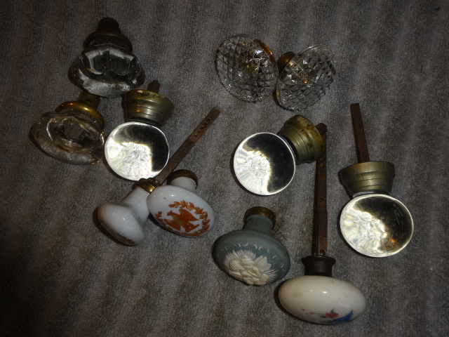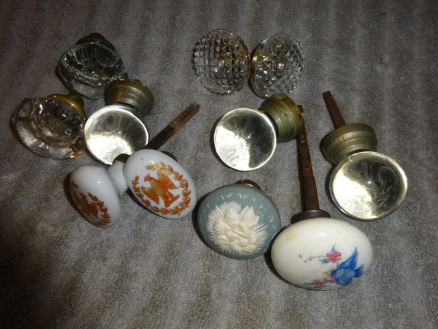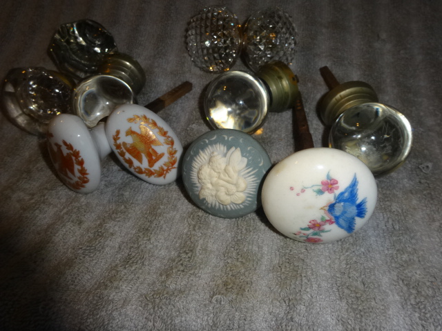 Assorted glass and porcine door knobs in excellent condition, one glass knob has some scuffs. Range from 2-1/4” to 2-1/2” in size