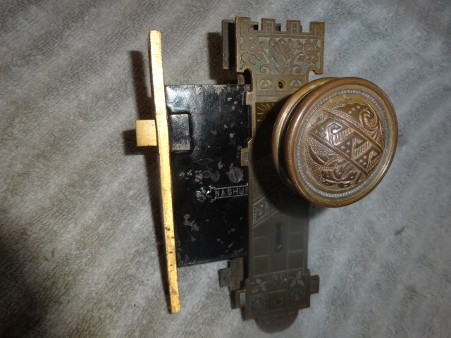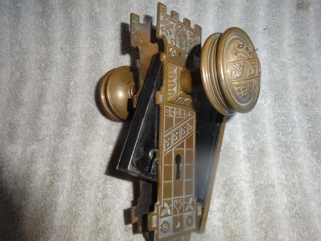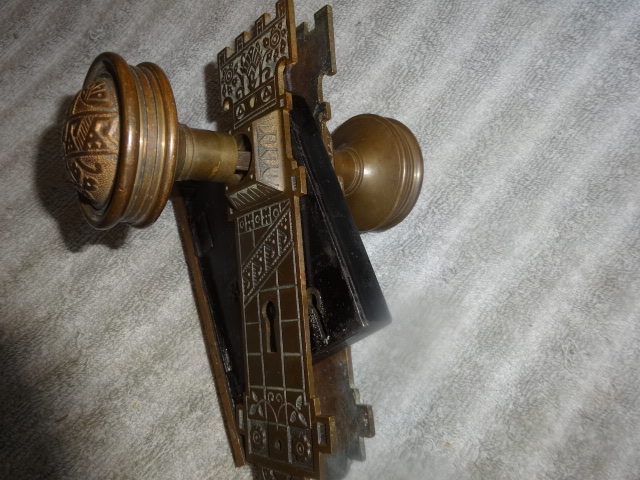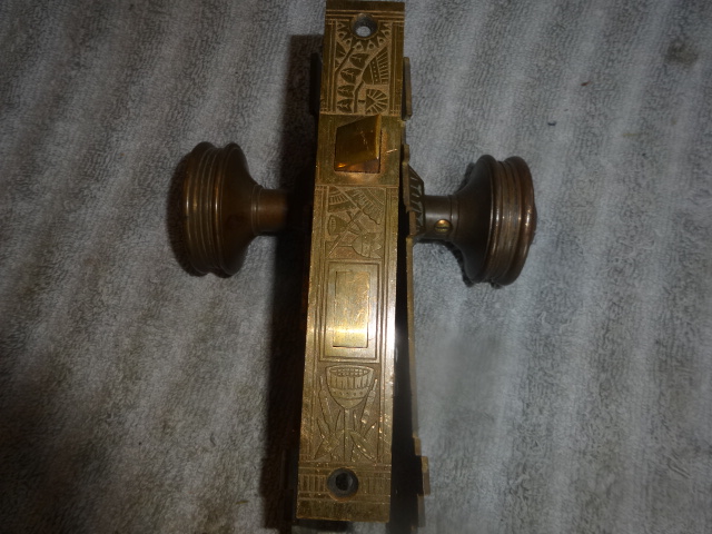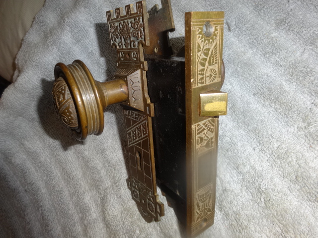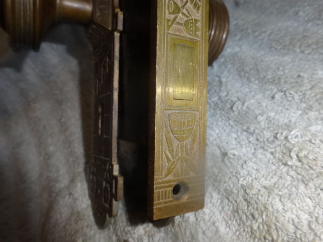 Bronze passage set with heavy duty decorative mortise lock and full size door plates in perfect condition.