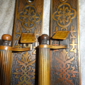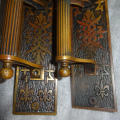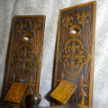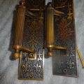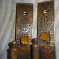 Beautiful pair of bronze door handles that still retain their long un-trimmed latch levers to fit most doors. Set has hard to find fluted door handles with thumb pieces showing only slight ware. Both measure 12” x 2-3/8” off-set handles are reversible. Mortise lock available if needed.