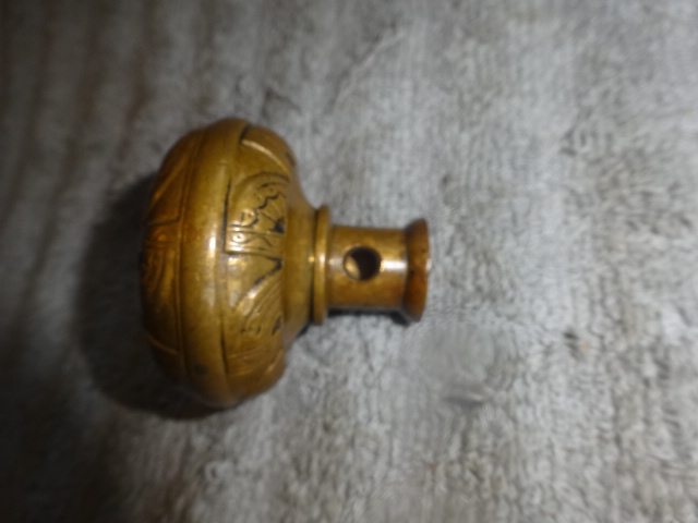 Victorian style knob nicely designed in two tone finish with small footed shank has normal usage wear