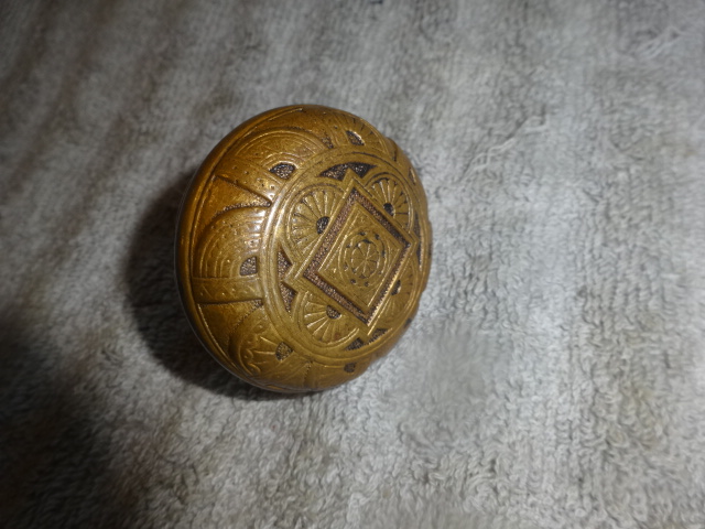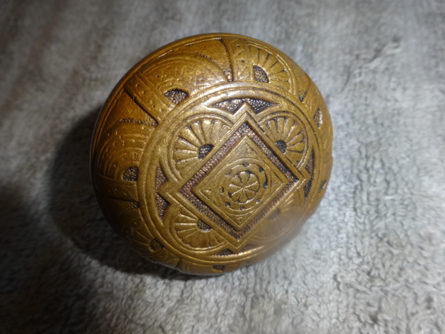 Aesthetic style passage knob with decorated back c. 1882