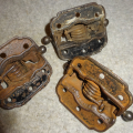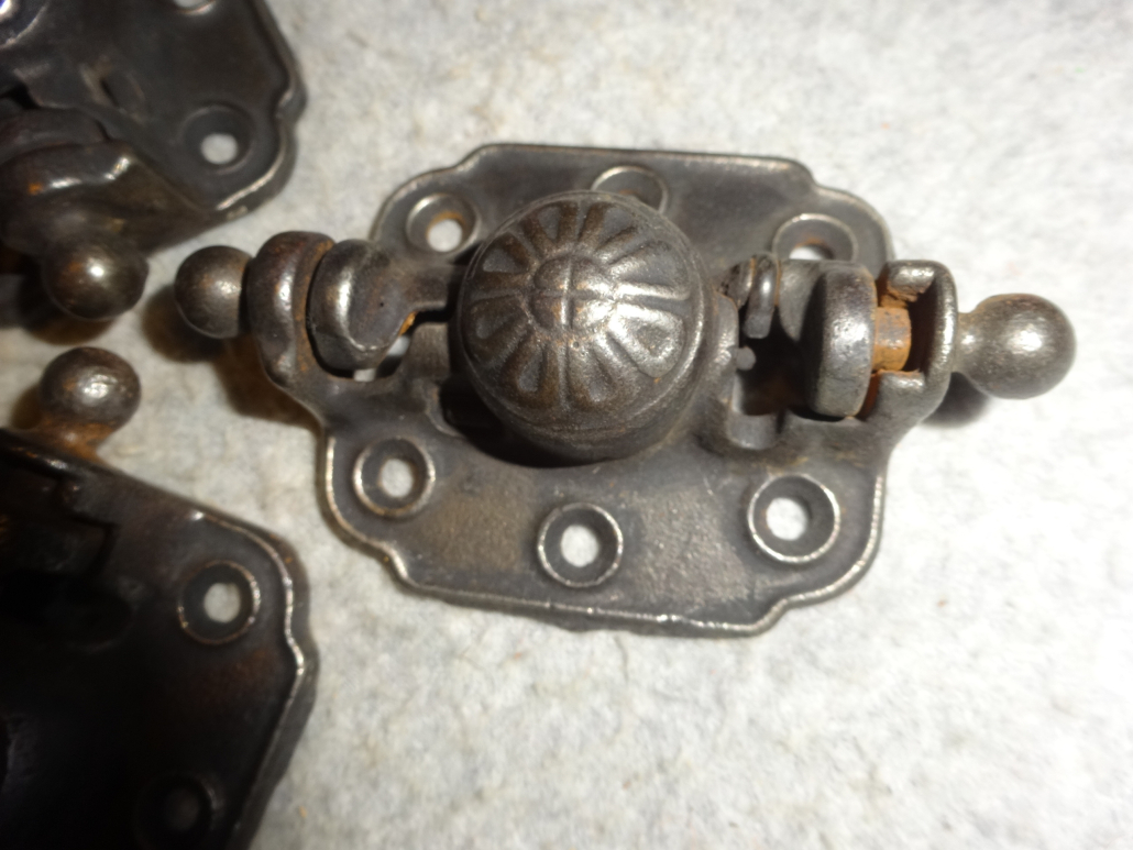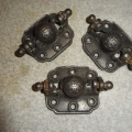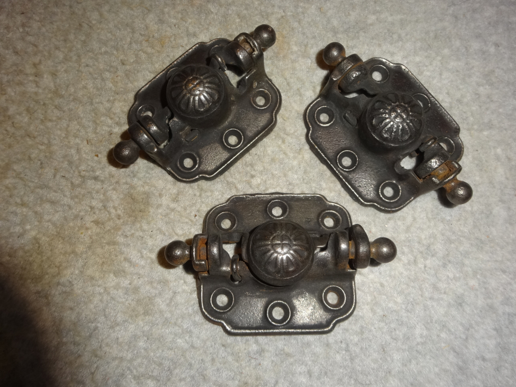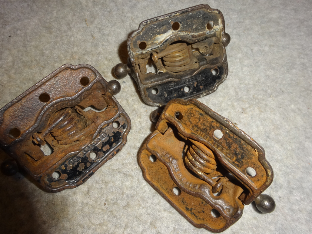 Matching set of 3 cast iron hinges with strong springs in excellent condition ready to install.