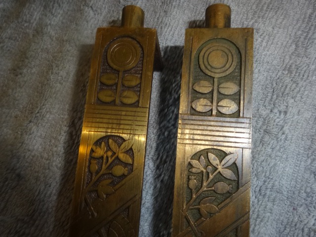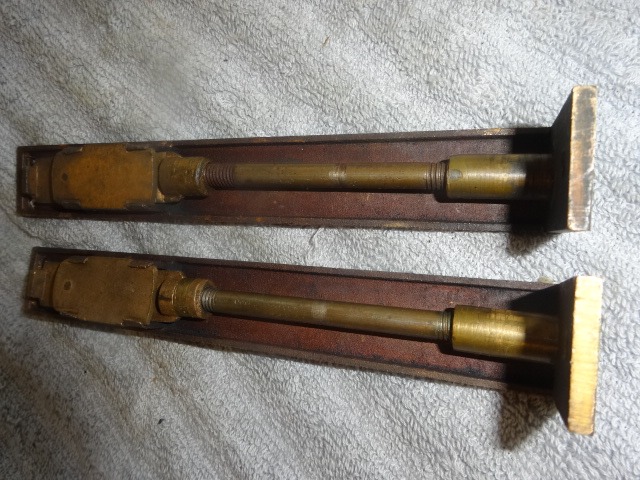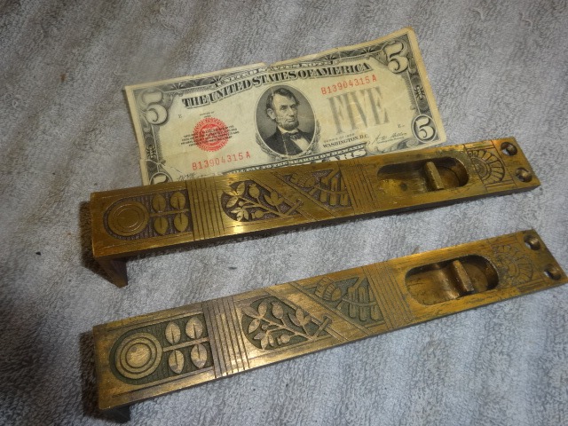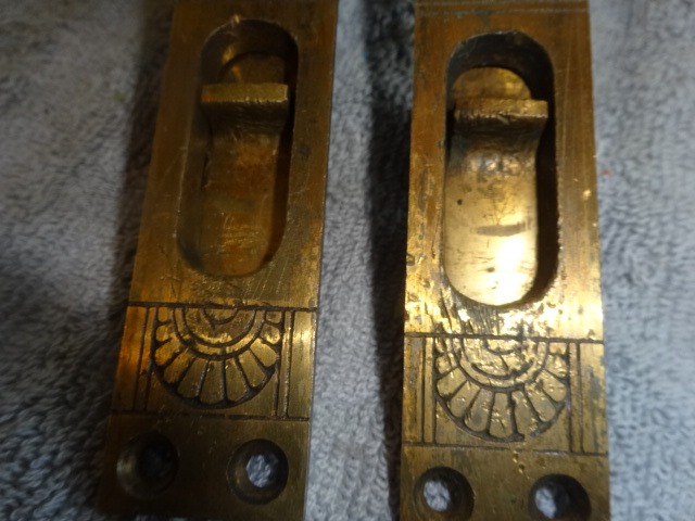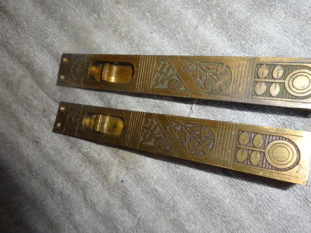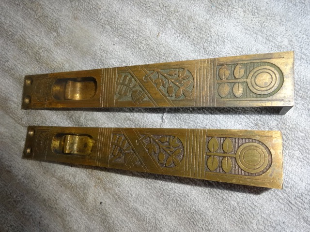 Antique slide bolts that are used to secure double doors, slide latches are spring loaded in perfect working order.