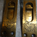 Antique slide bolts that are used to secure double doors, slide latches are spring loaded in perfect working order.