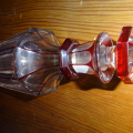 Here is a beautiful old hand cut crystal bottle with no haze that was hand blown with an applied ring on neck free from cracks, chips or damage in exceptional condition with its original ground glass stopper that fits tight. Would make a perfect weekend decanter, this highly decorative style doesn’t surface often. Measures 7” x 3”