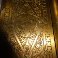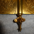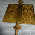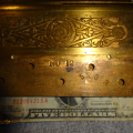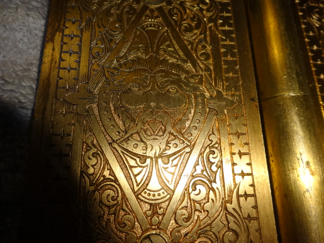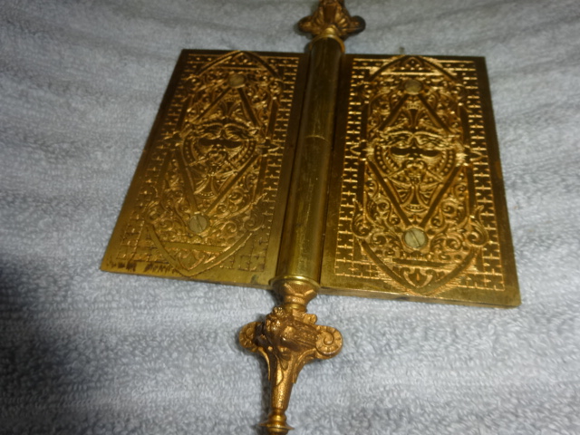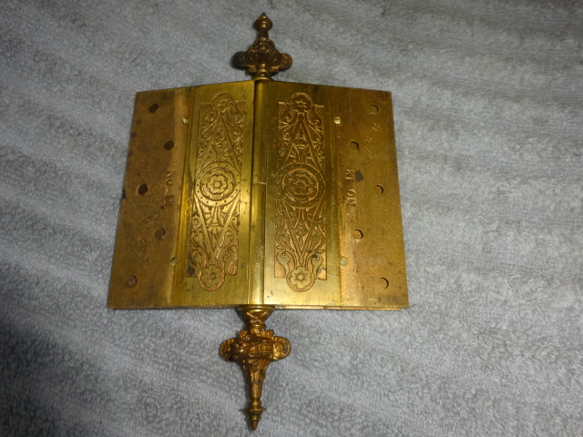Hard to find original gold gilt bronze door hinge with highly detailed double sided lion finales and cover plates with no pivot ware in excellent condition marked NO 12 5 X 6 – R
