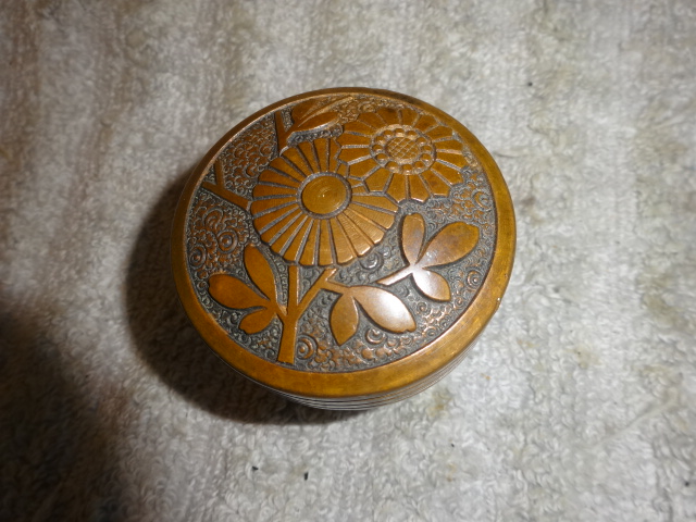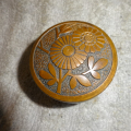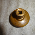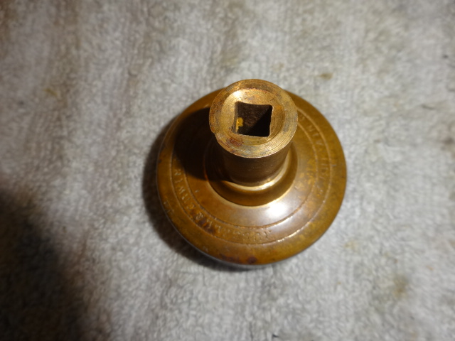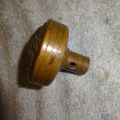 Sunflower knob showing the mfd. markings on back with normal usage ware. Knob is in overall excellent condition that displays well. Takes a 5/16” spindle and has a 11/16” shank
