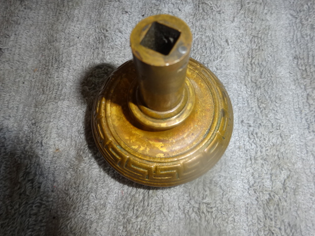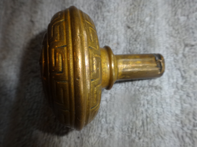 Antique bronze entry knob in original condition free from issues, looks to be exact same pattern as Corbin’s only a different style of mounting. This type knob was used in court houses and post offices throughout the US. Measures 2-1/2” has a 9/16” shank with ¼”passage size spindle. If you plan on using on a door let me know I will find a spindle for an easy install, circlip for mounting is with knob.