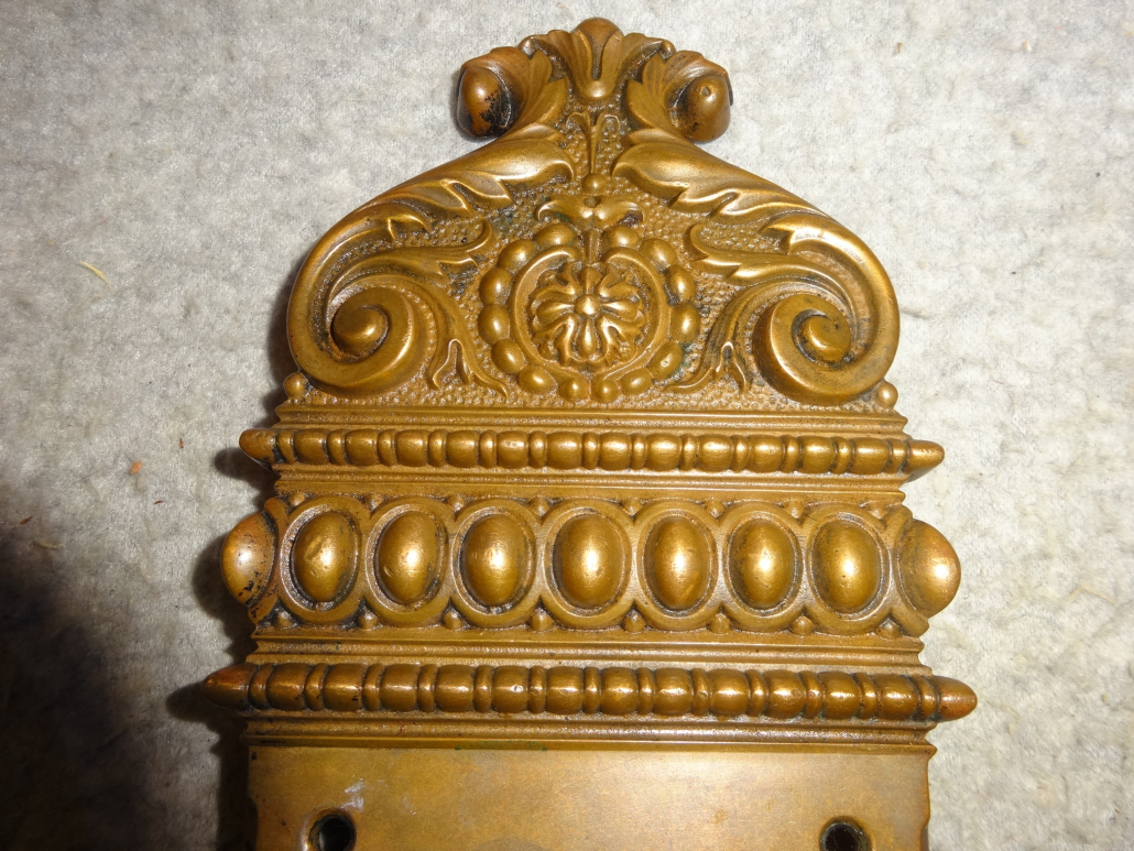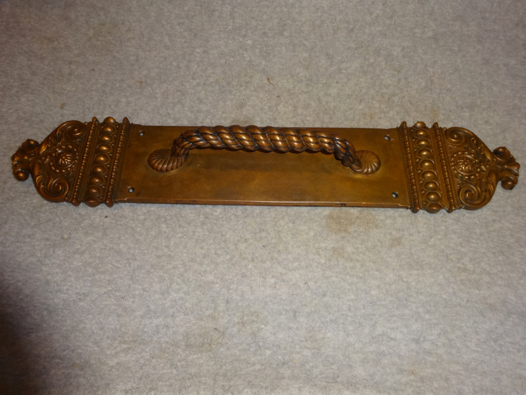 Hard to find ex-large bronze door pull with back marked R&E 1893