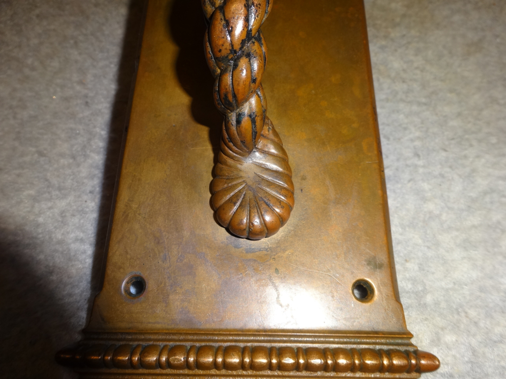 Jumbo size heavy bronze highly collectable door pull with exceptional quality in amazing condition with twisted decorative handle.